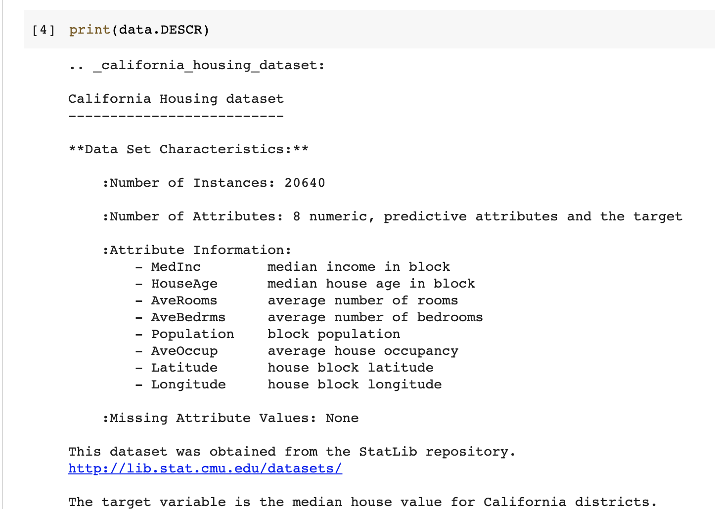california housing regression