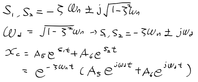 - 과소 감쇄(Under damped) : 감쇄비 < 1, 두 근이 공액 복소수인경우