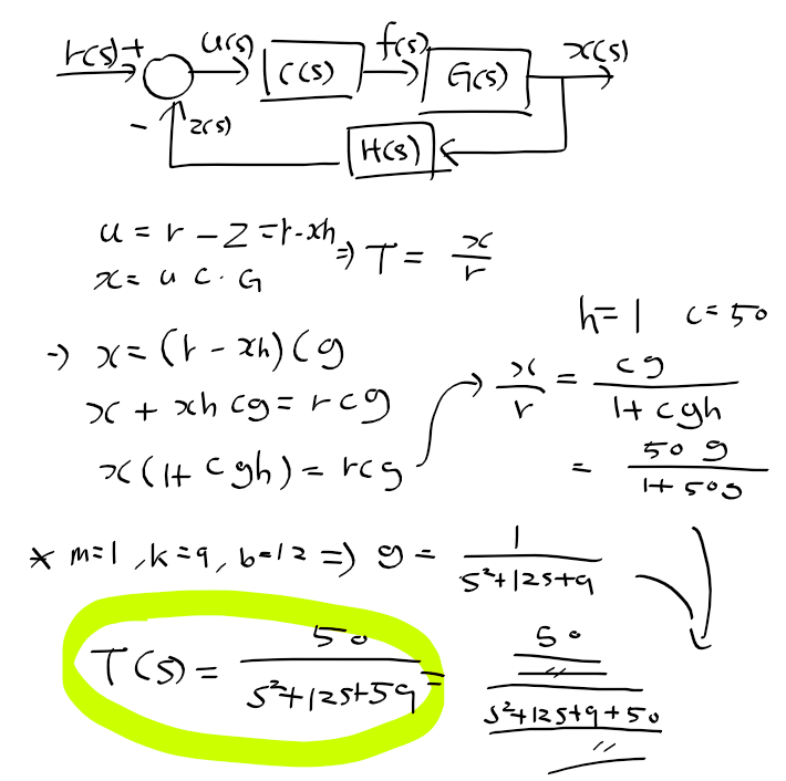 피드벡 제어시스템 전달함수 구하기