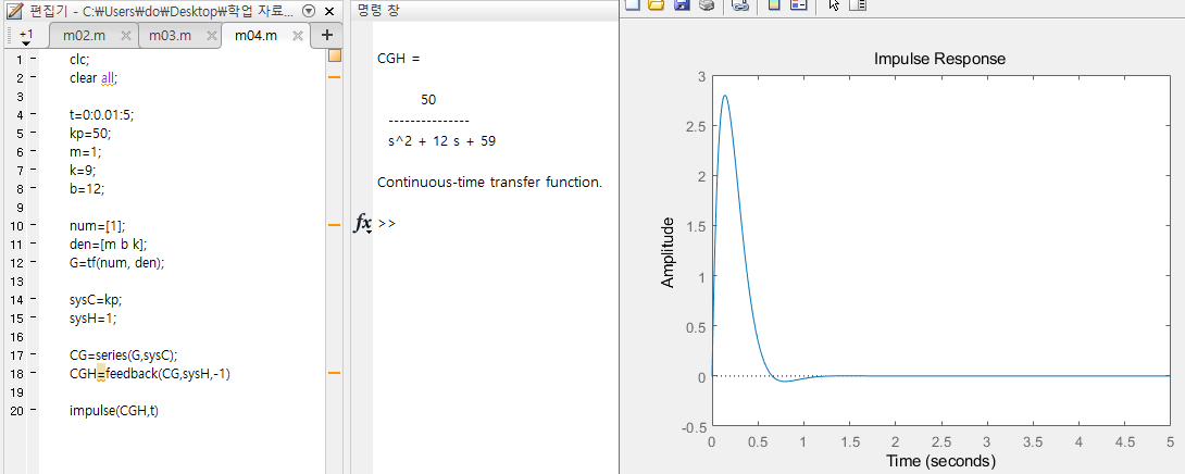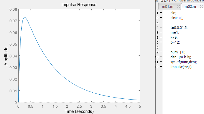 - m=1, k=9, b=12, 임펄스 응답