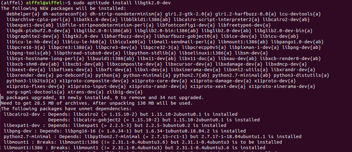 위 명령어로 libgtk2.0-dev를 설치하려고 하는데,
