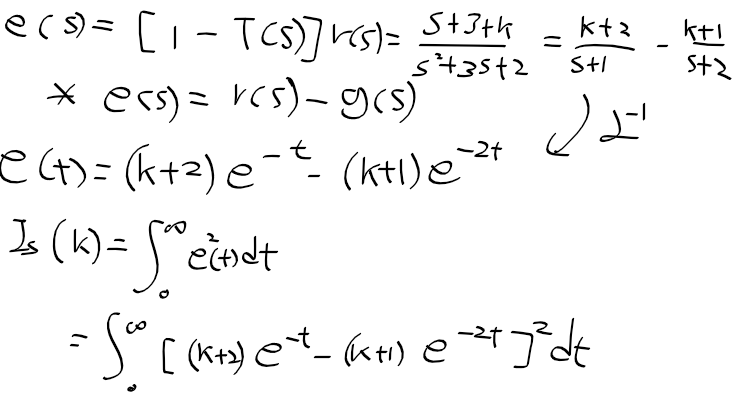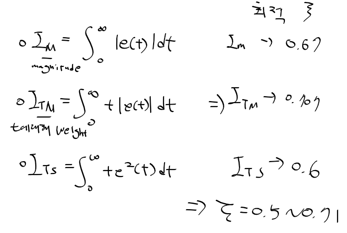 - 스텝 입력에 대한 오차e(t)의 제곱을 적분한값