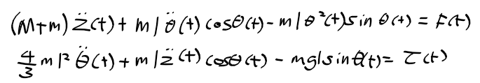 * 평형 상태 : theta=theta_dot = z_dot= F = tou =0, z=z0
