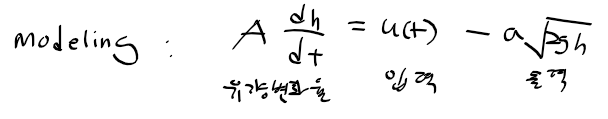 - 지정된 수위 h_d가 유지되도록 하는 적절한 제어입력 u(t) 선정