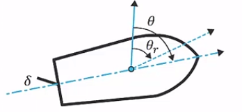 - 조타 각 : delta, 배가 향하는 각도 : theta