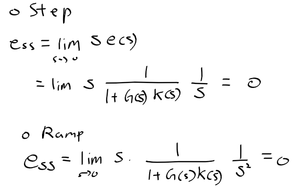 - 단위 스텝 기준입력, 단위 램프기준입력에 대해 정상상태오차 = 0