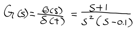 - 아래의 전달함수 극점 하나가 양의 실수 -> 안정화 필요