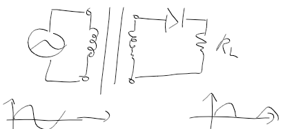- 교류 전원을 받아 변압 후, 다이오드를 통해 반파 정류하는 회로