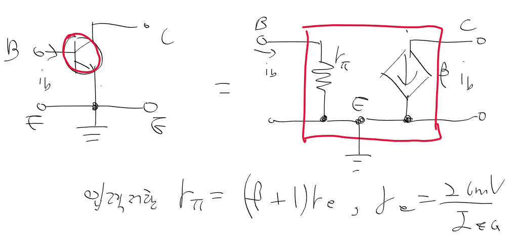 - 아래 그림은 CE 소신호 등가회로의 4단자 회로망 형태