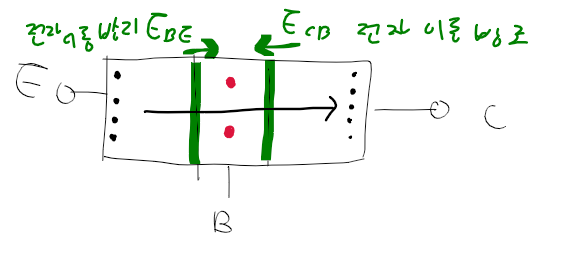 =>B-C에 역방향 바이어스를 인가하면 전장 E_BC가 더 두터워져 정공과의 결합을 줄여 더 쉽게 이동할 수 있게 된다.