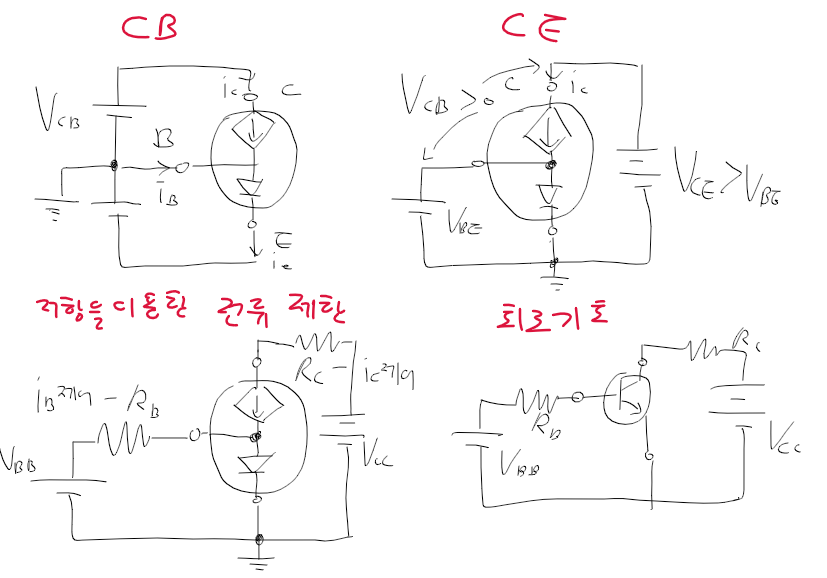 - B-E 사이에 있는 다이오드는 온도 영향을 크게 받음 -> 저항 R_B를 직렬연결하여 I_B 제어