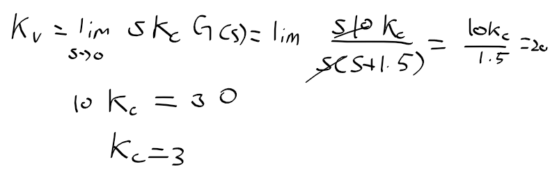 1.. 속도 오차 상수로 정상상태 응답에 관한 설계 사양을 만족하는 제어기 게인 K_c = 3 선정