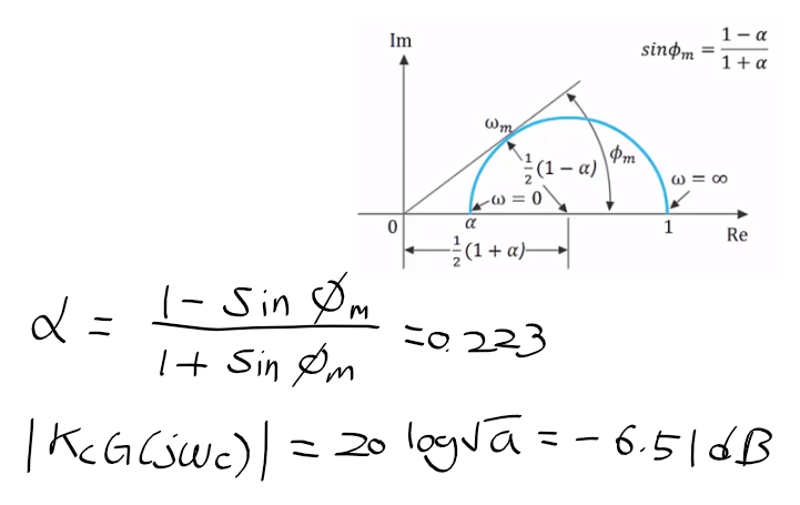 * 앞섬 제어기의 나이퀴스트 선도로 위상 앞섬각 phi_m을 이용하여 앞섬 제어기의 alpha를 구할 수 있다