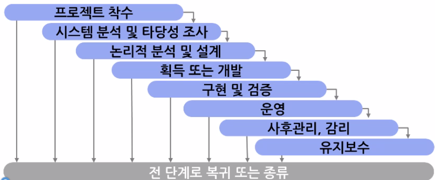 - 소프트웨어 개발을 단계, 순차, 체계적 접근