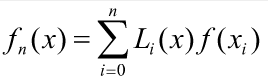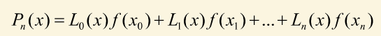 서로 다른 (n+1)개의 점 x_0, ..., x_n에 대해 f(x)와 함수값이 같은 n차 이하 다항식 P_n(x)는 다음과 같음