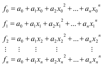 -> 가우스 소거법 등으로 계산하여 a0, a1, ... an을 구하면 됨