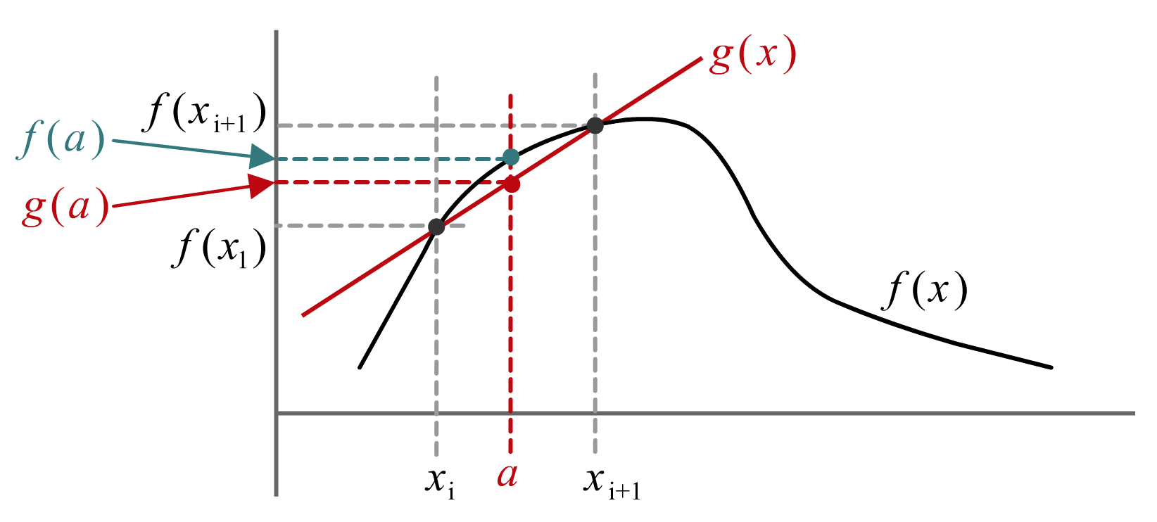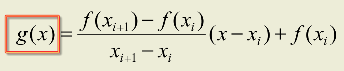 - (xi, f(xi)) , (xi+1 , f(x+1)) 을 지나는 직선의 방정식