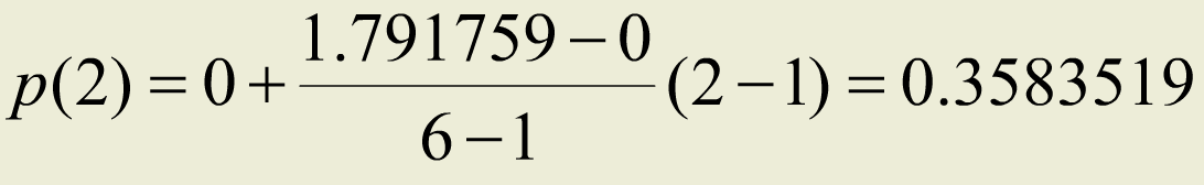 - ln 1 = 0과 ln 6 = 1.7917595 사이에서 다음과 같이 계산