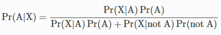 베이즈 정리로 이를 식으로 정리하면 다음과 같이 정리할 수 있습니다.