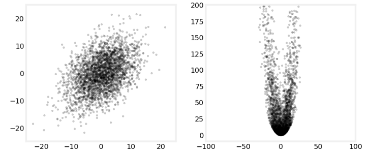 좌측 그림은 3000개의 점이 가우시안을 따르며