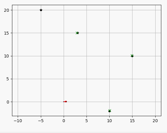 xTrue, z, xDR, ud = observation(xTrue, xDR, u, RFID)