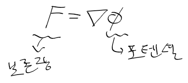 - 아래의 식이 주어질때 스칼라 함수를 기울기 벡터의 포텐셜, 기울기 벡터를 보존장