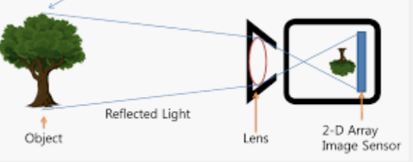 - 빛이 핀홀 카메라의 작은 구멍으로 들어가 이미지 평면, CCD 상에 맺힘