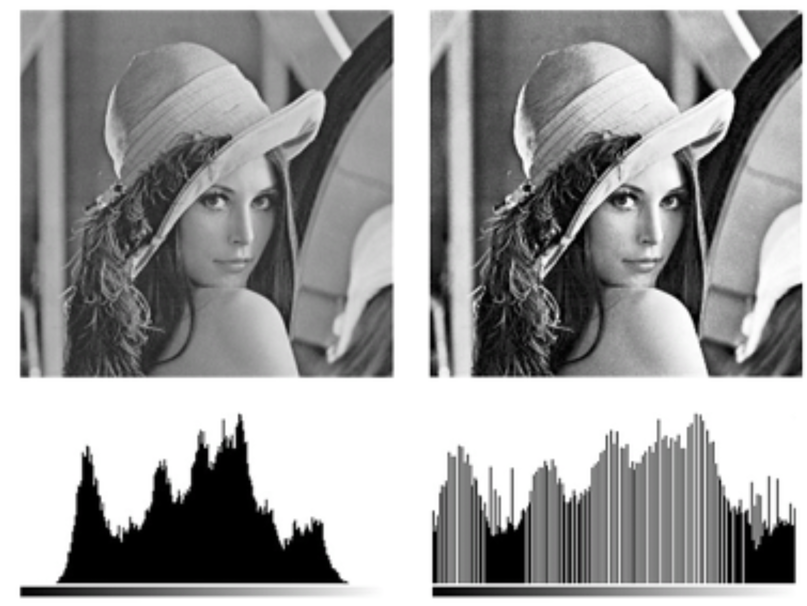 - 좌측 영상이 원본, 우측 영상이 히스토그램 평활화 수행 후 영상