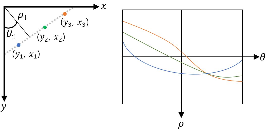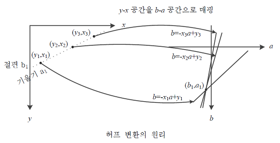 1. y-x 공간에 존재하는 점(에지)들을 직선의 방정식으로 나타내는 b-a 공간에서 표시