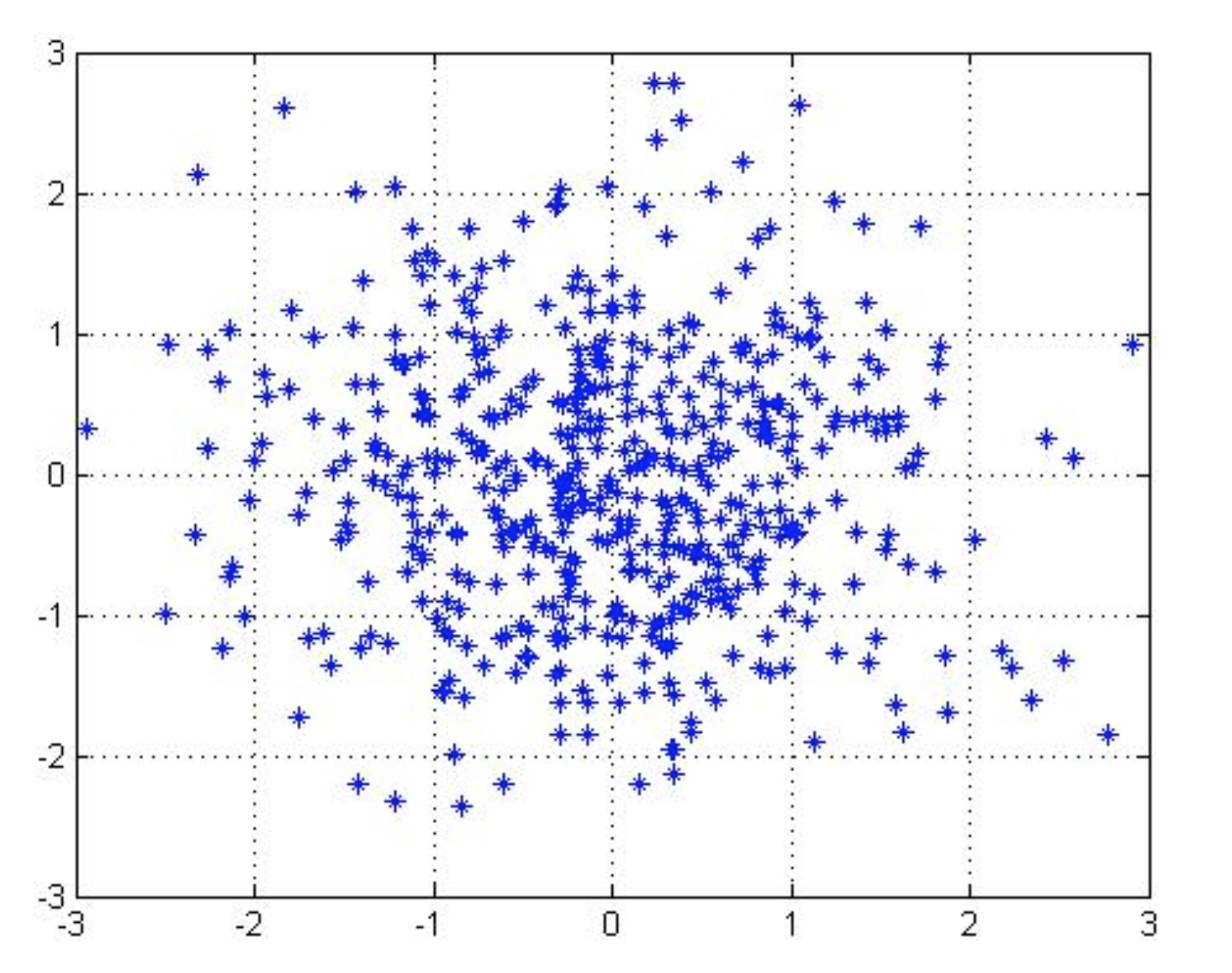 - 가우시안 분포를 따르는 데이터들의 산점도