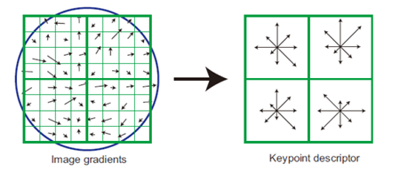- SIFT 기술자 : 특징점 주위를 4등분. 한 영역에 4 x 4 x 8 = 128바이트. 128 x 4 = 512바이트