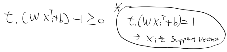 - 아래의 조건이 주어질때 등호가 성립하는 경우가 서포트 벡터