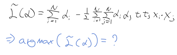 - KKT Karush-Kuhn-Tuckker 조건식을 유도하여 정리하면, 아래의 식을 최대화 하는 라그랑주 승수를 구하는 문제가 됨.