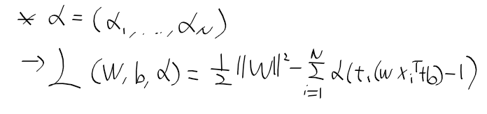 - 위 조건식에 라그랑주 승수 alpha_i를 부여