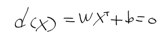 - 이진 분류 binary classification 수행하는 결정 초평면 decision hyperplane에 대한 식은 아래와 같이 정리할 수 있음.