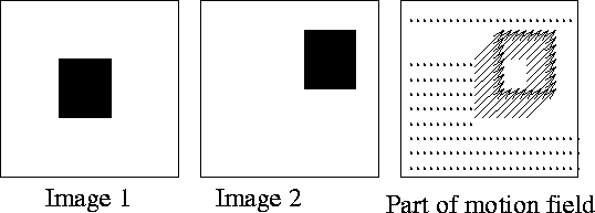 - 아래의 예시는 이동한 사각형 사이의 모션 장을 보여줌