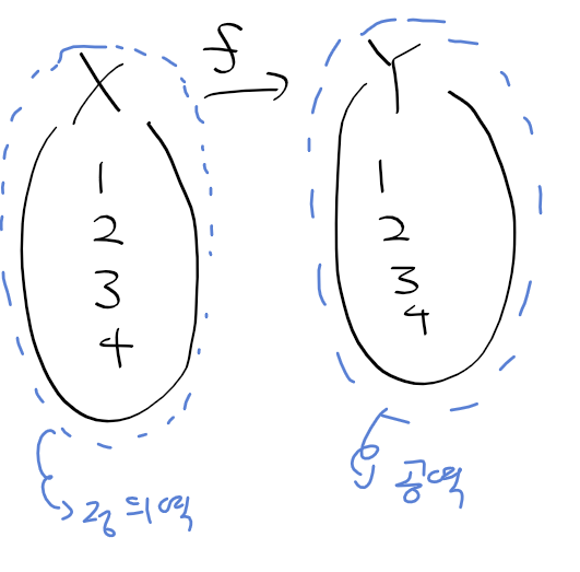 - 여기서 집합 X를 정의역, Y를 공역이라 한다.