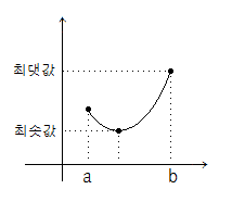 - 닫힌 구간 [a, b]에서 f(x)가 연속이면, 반드시 이 구간에서 최대 최소값을 가짐
