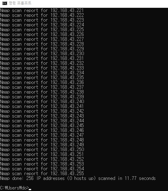 192.168.43.0 ~ 192.168.43.255 사이에 접속가능한 호스트들이 존재하는지 확인하면 되겠습니다.