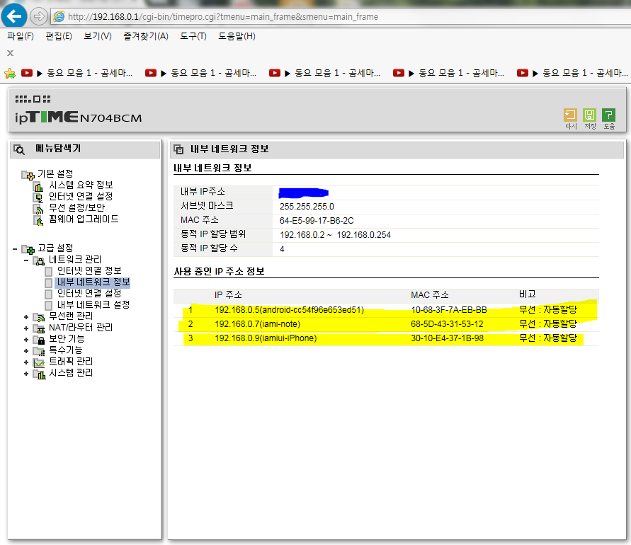 192.168.0.1에 들어가서 주미의 아이피를 쉽게 확인할수 있겠지만