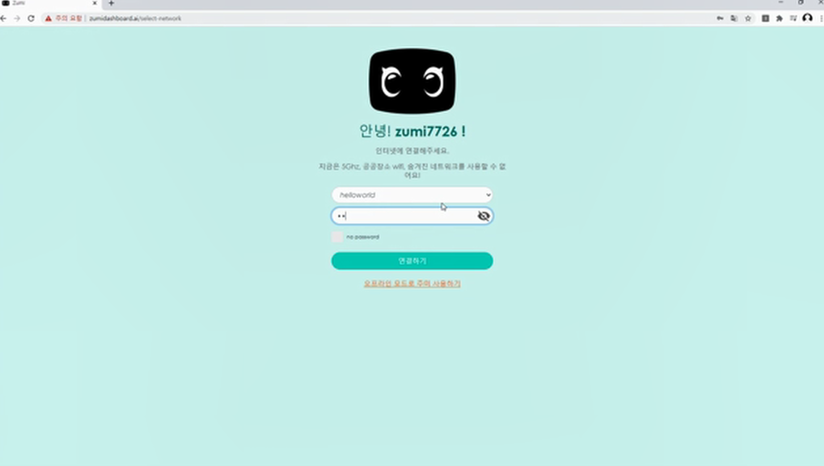 대시보드 사이트에 주미와 연결할 공유기를 선택하고, 비번도 입력해줍시다.