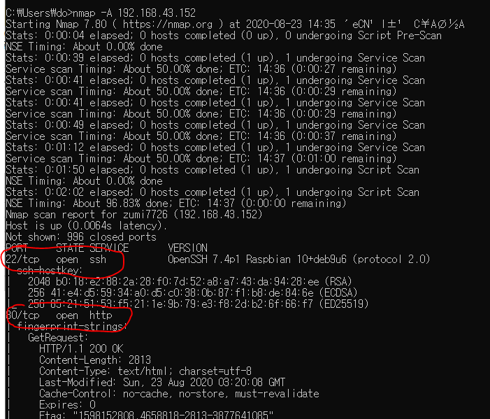 주미에 접속하기 전에 nmap -A 옵션으로 자세히 한번봅시다.