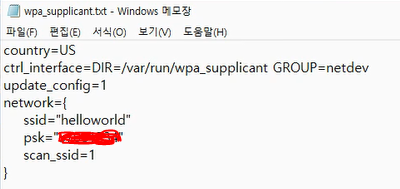1. 연결할 엑세스 포인트(공유기나 핫스팟)에 대한 정보를 wpa_supplicant.conf 파일을 만들어 적어주고