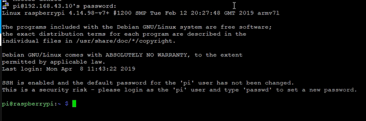 디폴트 기본 아이디 및 비번 : pi/raspberry