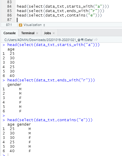 - ex : filter(data_txt, age > 30)