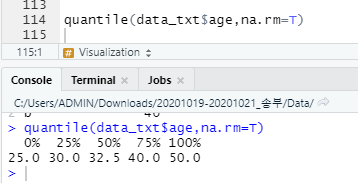 - 25%(Q1), 50%(Q2), 75%(Q3)