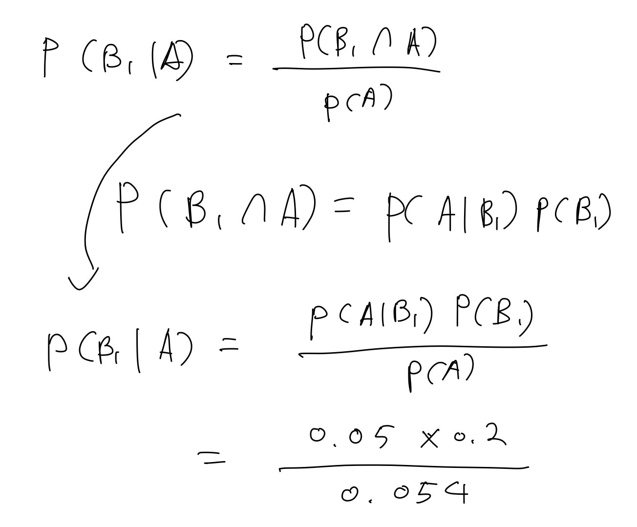 - ex. A번 라인에서 불량품이 나올 확률 -> 불량이 나왔는데 A번 라인일 확률