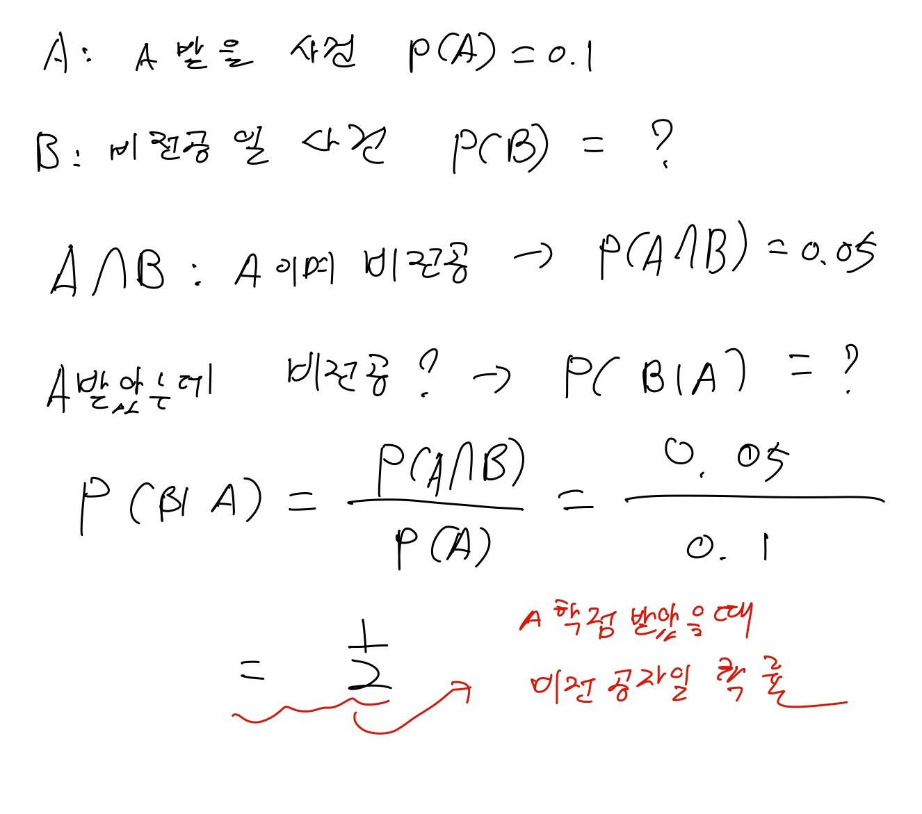 - 어떤 사건이 발생했다고 가정할때 다른 사건이 발생할 확률