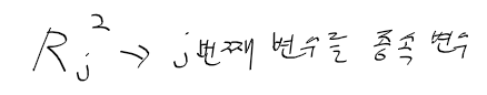 - 모델에서 j번쨰 변수를 종속변수로 하였을때의 결정계수