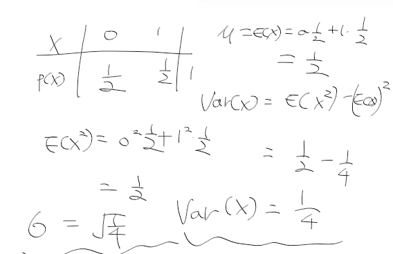 동전을 한번 던져서 나오는 확률에 대한 분산과 표준 편차를 구하시오